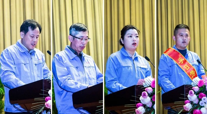 家紡三公司總經(jīng)理王啟軍,高源化工公司副總經(jīng)理許學強,電機公司總經(jīng)理譚英璞,以及勞模代表家紡四公司漂染車間代班長冷光澤相繼作了表態(tài)發(fā)言,表達了珍惜榮譽、再接再厲的決心和信心。